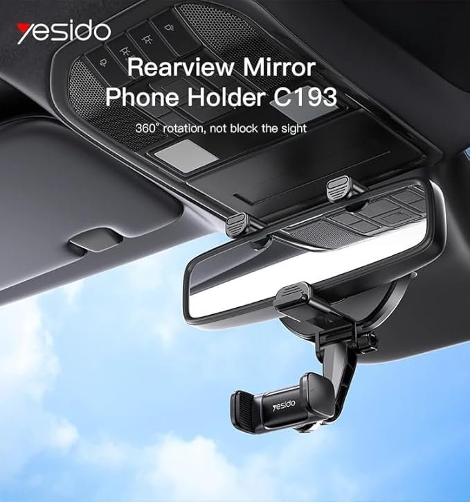 YESIDO Universal Rear View Mirror Phone Holder 360 degrees rotation: Support to change the angle at will so that you can get the best viewing angle, suitable for multiple occasions